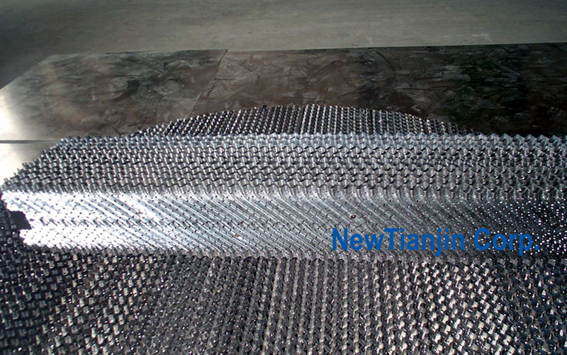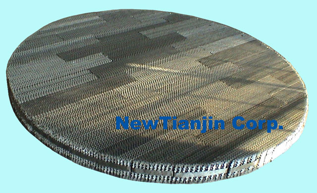圖1 TJH型填料示意圖 2. TJH型填料的特點 (1) 效率高。TJH型填料內(nèi)氣液湍動強化傳質(zhì),顯著提高傳質(zhì)效率,較普通規(guī)整填料效率可提高5%以上。 (2) 壓降低。TJH型填料內(nèi)由于氣液流向的平滑過渡,有效消除了普通填料層的界面阻力,較普通規(guī)整填料壓降約降低10%。 (3) 通量大,由于有效避免了液相在填料內(nèi)部的積累,較普通規(guī)整填料通量可提高30%以上。