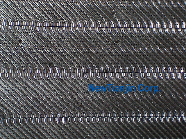 1. 概述 TJH型填料(脈沖規(guī)整填料)的特征在于在一盤填料內(nèi)實現(xiàn)氣液的多次脈沖(如圖1所示),加強規(guī)整填料內(nèi)氣液湍動,可大幅度提高分離效率,降低阻力。 TJH型填料根據(jù)氣體在規(guī)整流道內(nèi)的運動特點,在一個填料盤高內(nèi)設(shè)置了1~4個脈沖區(qū),脈沖區(qū)的氣液流向與塔內(nèi)的氣液流向相同,氣液在脈沖區(qū)為上下垂直運動。在脈沖區(qū),上升的氣流由傾斜上升方向漸變?yōu)榇怪鄙仙,然后又漸變?yōu)樾毕蛏仙,這種填料傾角變換過程形成了氣液兩相的一個脈沖運動。在一盤脈沖規(guī)整填料內(nèi)可以根據(jù)氣液負(fù)荷的大小,在一個填料單元內(nèi)實現(xiàn)氣液的多次脈沖運動,降低了填料層壓降,同時氣液兩相在脈沖區(qū)的湍動傳質(zhì),提高了分離效率。